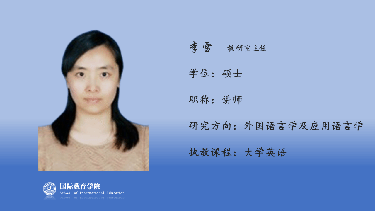 中文国际教研室(国际交流部)现有教师5人,主要负责教授我校来华留学生的中文课程。课程内容包含《汉语综合》、《HSK辅导》和《中国文化》三门课程,并积极配合学校相关部门,积极推进国际交流与合作。高级职称教师2人,中级职称3人。博士研究生1人,硕士研究生3人,本科1人。