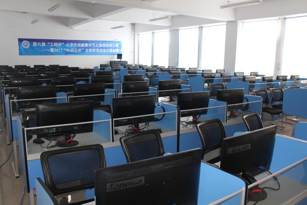 外语学院语言实验中心从2011年建立到现在,实验室规模正逐步的壮大起来。从成立之初的三个实验室到现在已拥有10个实验室,占用面积从350平方米扩大到现在的740平方米。实验室有专门的教师进行管理,并制定了严格的实验室规章制度,不仅针对实验员而且对在实验室上课的每位教师和学生都制定了相应的管理制度。实验室也配备专门的学生对实验室的环境卫生每天进行定时的打扫,实验员每天上课之前也对每个实验室,每台设备进行检查,做到心中有数,如有机器发生故障,及时报修。实验室做到了在近三年的使用过程中,没有发生一次教学事故,保证外语学院全院教学工作的顺利进行。语言实验中心现有三百多个座位供专业学生使用,还有一百多座位给公外学生自主学习使用。其中为了满足专业学生听力课和口语课需求,实验室714、718、619面向教师和学生全天候开放,每天都承担着不同类型的专业课,同时也承担着韩语和德语的听力教学任务。本学期又增加了701专业语音室,并配备了相应的学习平台,供教师和学生使用。619 为环幕式三维立体教学系统,为英语专业的很多课程提供了良好的教学环境和教学资源素材库。716为公共礼仪实训室,专门有教师为本专业的学生上礼仪、形体实训课,为他们毕业后走向工作岗位,奠定了良好基础;此外外语学院还设置了办公自动化实训室和新建成的商务英语实训室。多年来,省内多个院校来到外语学院实验室参观学习,并给予好评。