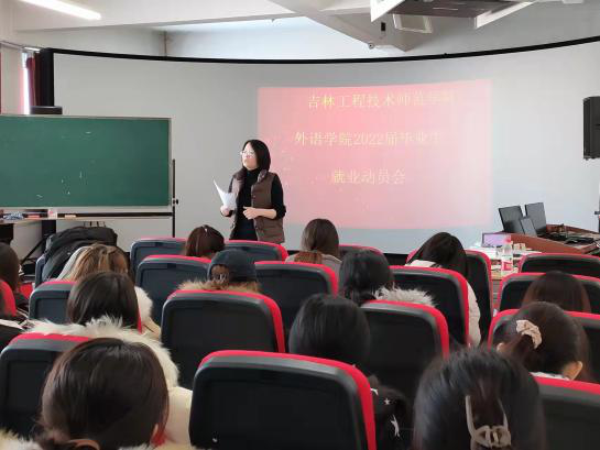 本次大会的最后一项内容由外语学院党总支副书记杨德成及2022届毕业生辅导员徐珊珊同志就毕业生就业工作及假期安全予以强调,二位教师为全体毕业生系统梳理了毕业生当前所面临的严峻形势、如何拓宽自己的就业渠道、假期交通安全及如何做好自身防护等问题,全体毕业生受益匪浅。
