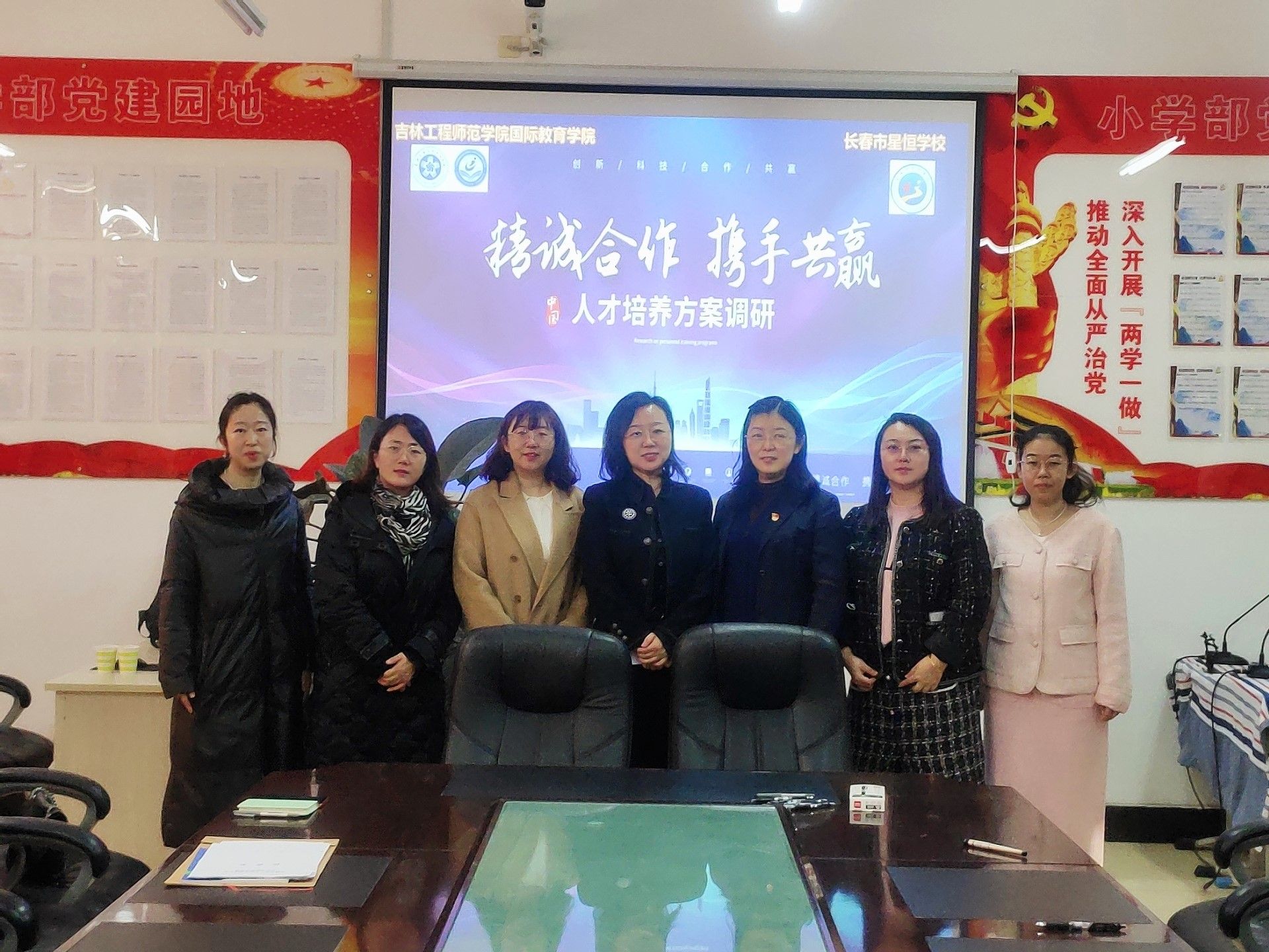 为进一步优化英语师范专业本科及研究生人才培养方案,提升人才培养质量,2023年12月6日,yl23411集团院长赵文博、副院长刘思宁、英语专业教研室主任张严、实习指导教师代表董小晶赴长春市星恒学校开展人才培养方案调研活动及学术交流。