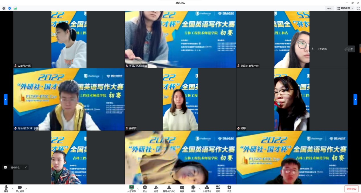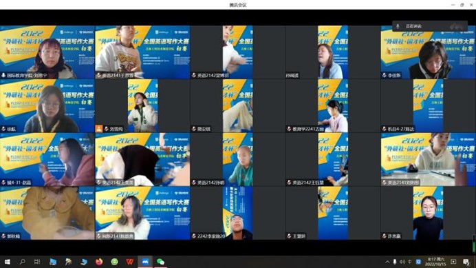 10月15日,2022年“外研社·国才杯”全国英语写作大赛永利官网初赛顺利举行,本次校园初赛以线上模式开展,采用腾讯会议进行线上监考。