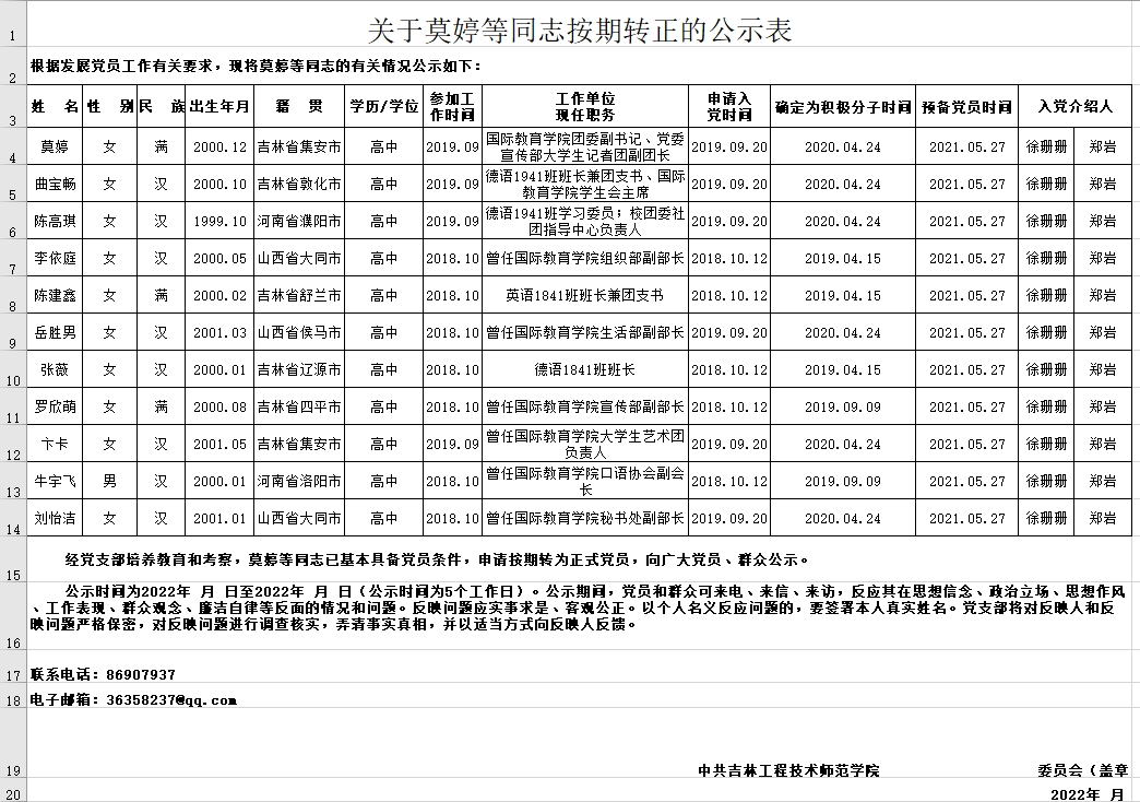 2022年5月预备党员转正公示表