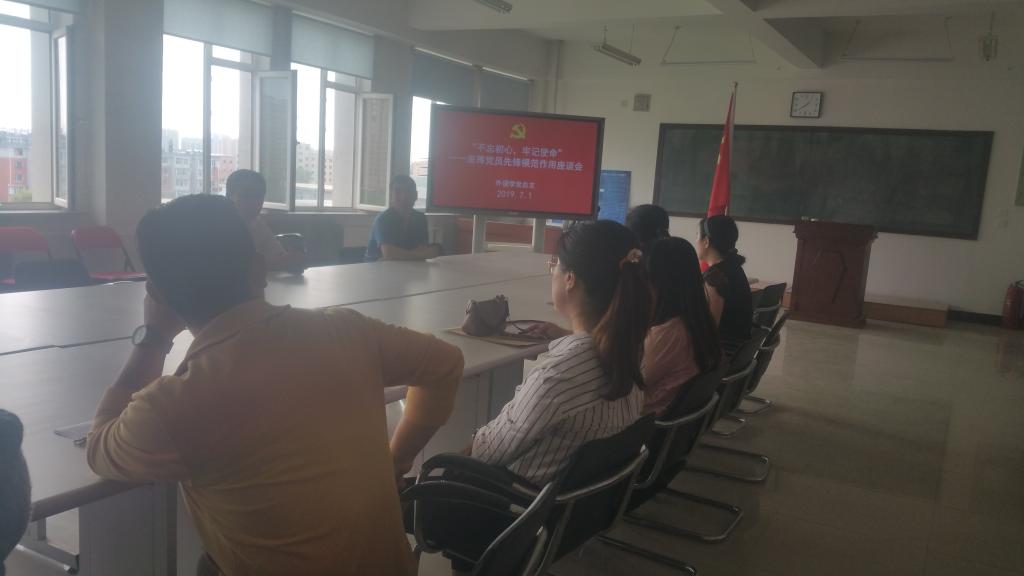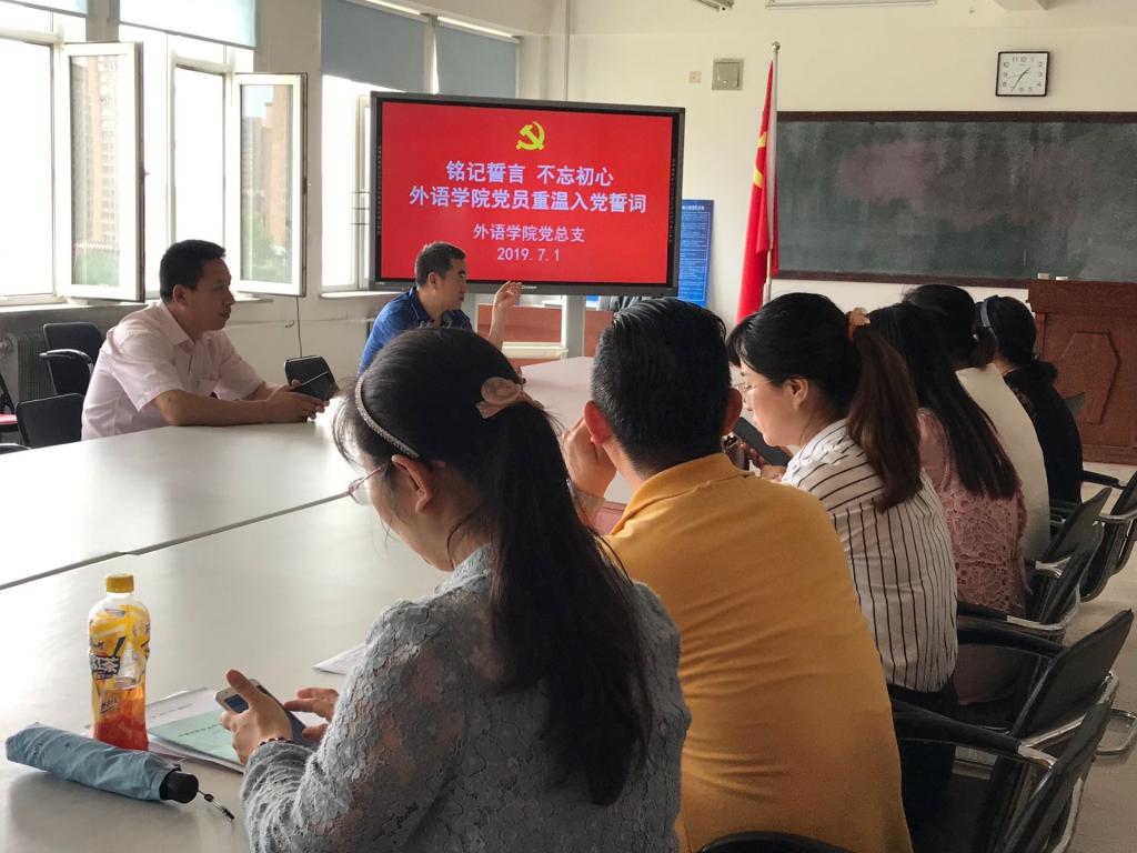 7月1日下午,外语学院党总支在二实验楼606会议室举行迎七一系列活动,部分党员无课党员参加了活动,活动由党总支书记谭洪君主持。