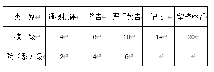 凡违反校规校纪,被处以通报批评以上处分的,根据下表的标准扣分,多次受处分的,处罚分累加计算,扣完为止。