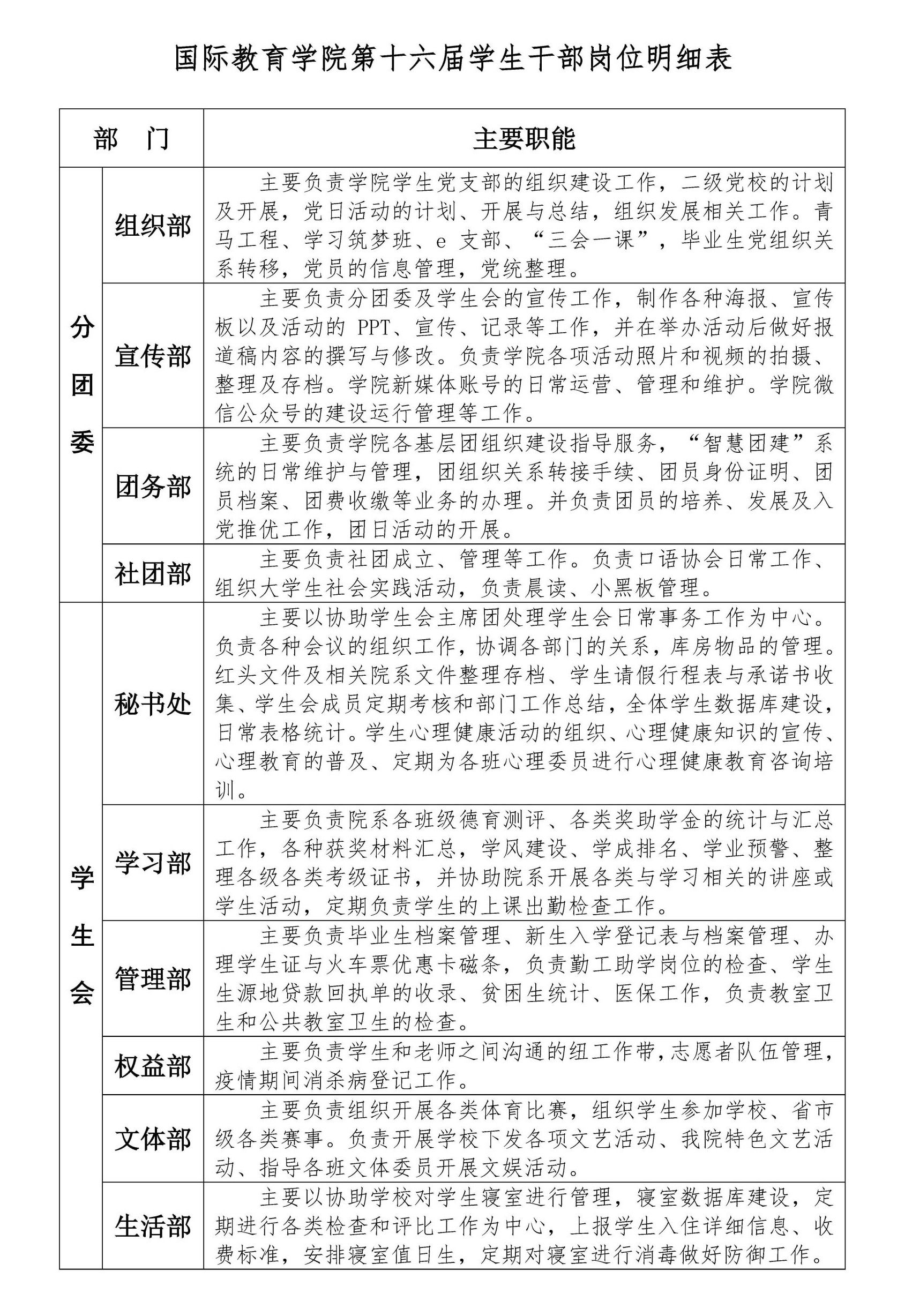 结合我院实际,新一届学生干部拟面向全院公开选拔以下岗位: