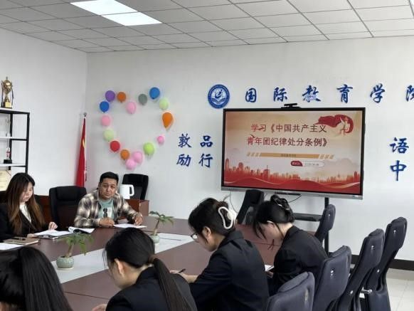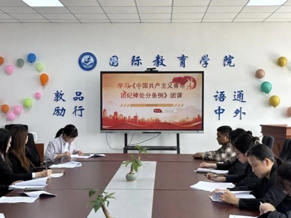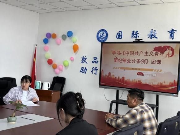 为深入学习贯彻《中国共产主义青年团纪律处分条例》(试行),强化团员纪律意识与责任担当,yl23411集团团委于2025年6月9日在第二实验楼708会议室组织开展了《中国共产主义青年团纪律处分条例》(试行)专题团课。由团委书记木塔力普·吐尔洪主持,党总支副书记郑岩、团委副书记沈沛然及各团支部书记、团委委员参加专题学习。