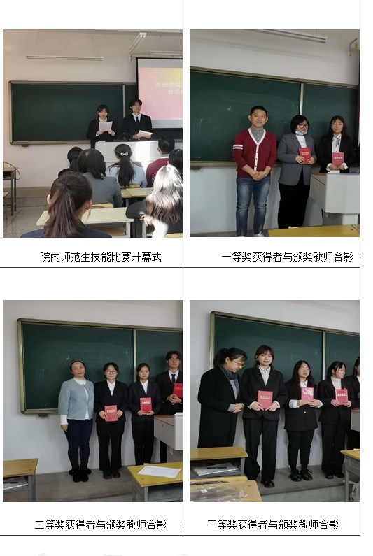 本次比赛共有15名同学报名参加大赛,经过激烈角逐,最终三位同学获得一等奖,四位同学获得二等奖,八位同学获得三等奖,获得一等奖的三位同学将代表外语学院参加学校举行的师范生教学技能大赛。通过此次大赛,进一步提升了参赛选手的语言及师范技能,并且促进了外语学院整体教学质量的提高。