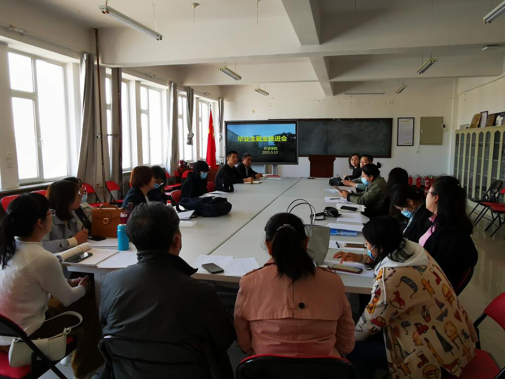 2021年5月12日上午8:30,外语学院在新实验楼627召开毕业生就业工作推进会。外语学院班子成员、毕业班辅导员及毕业论文指导教师参加会议。会议由党总支副书记杨德成主持。