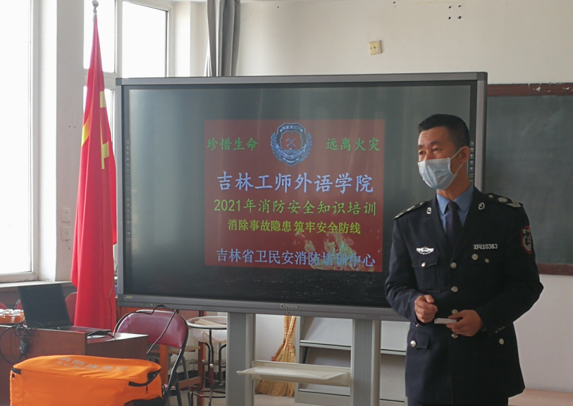 为深入贯彻学校安全生产专项整治三年行动的工作安排,扎实推动外语学院各项工作任务落实。2021年4月28日下午1:10,外语学院在二实验楼627举行消防安全知识培训讲座,外语学院全体教师参加。杨德成副书记主持会议,由吉林省卫民安消防教育培训中心王永刚教官以《消除事故隐患 筑牢安全防线》为题进行消防安全知识讲座。