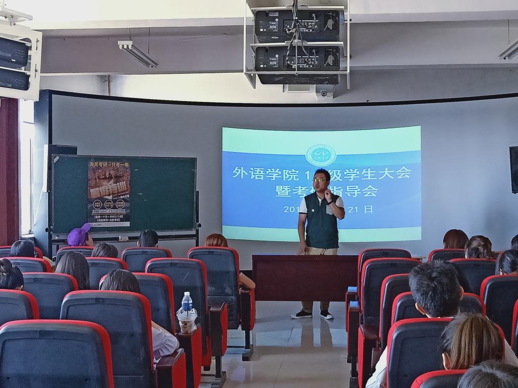 眼下,大三学生临近期末,即将步入大四实习期,也正值考研的关键时期,为做好大三学生相关工作,外语学院于6月21日中午,在二实验楼619召开了2016级学生大会暨学生考研指导推进会,全体大三同学参会。会议由大三辅导员、党总支副书记赵春阳主诗。