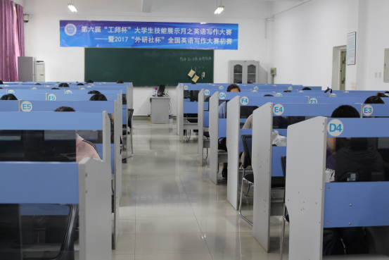 第六届吉林工师技能展示月活动之英语写作大赛,暨“外研社”杯全国英语写作大赛初赛得到了外语学院张丽梅院长和修杨副院长及创新创业处的大力支持。本次大赛首次采用“在线考试”的形式,并且得到了我校网络中心的技术的大力支持,大赛于2017年9月22日9:00-11:00在外语学院语言实验室711和608同时进行,共有来自于主校区、泰来校区和高新校区的65名同学参加了本次大赛的角逐。