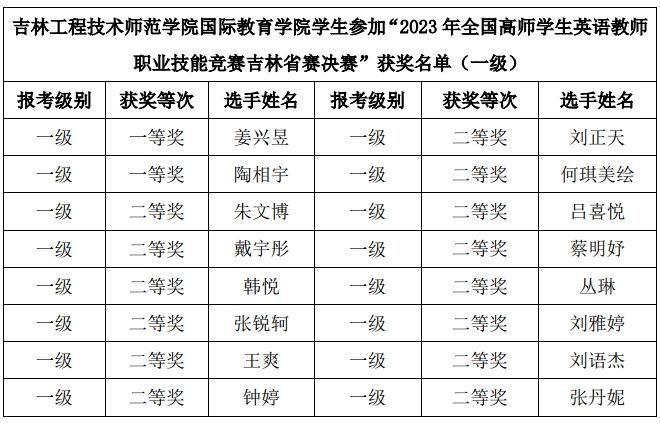 12月17日,“2023年全国高师学生英语教师职业技能竞赛吉林省赛决赛”在长春师范大学举办。来自东北师范大学、长春师范大学、永利官网等16所高校的300余名英语专业师范生参加比赛。经过激烈角逐,yl23411永利集团的22名参赛选手分别获得一等奖和二等奖。
