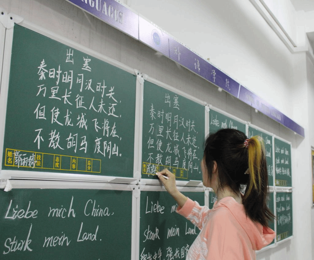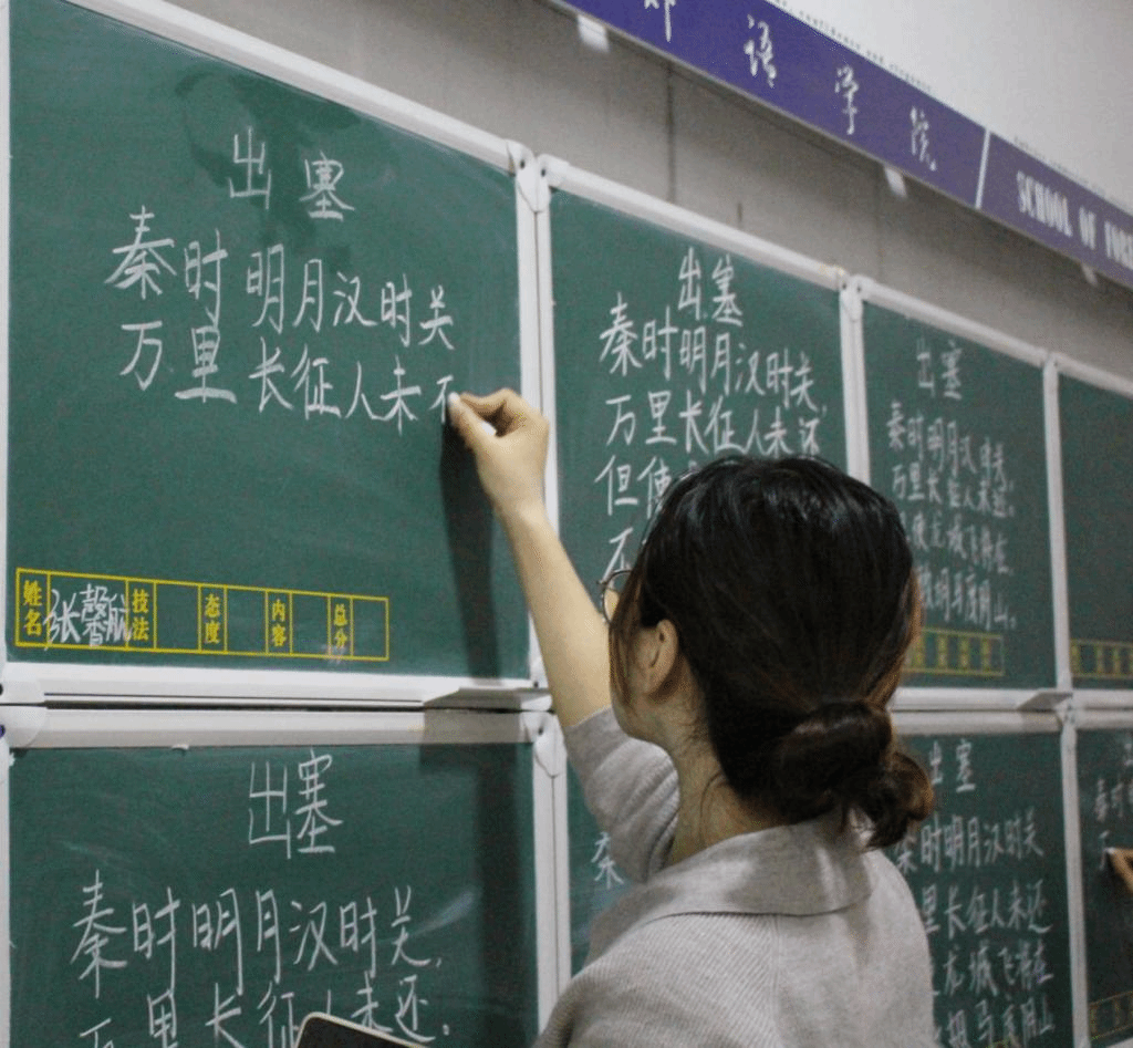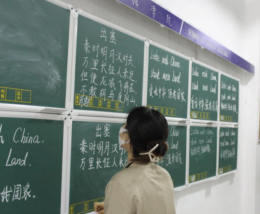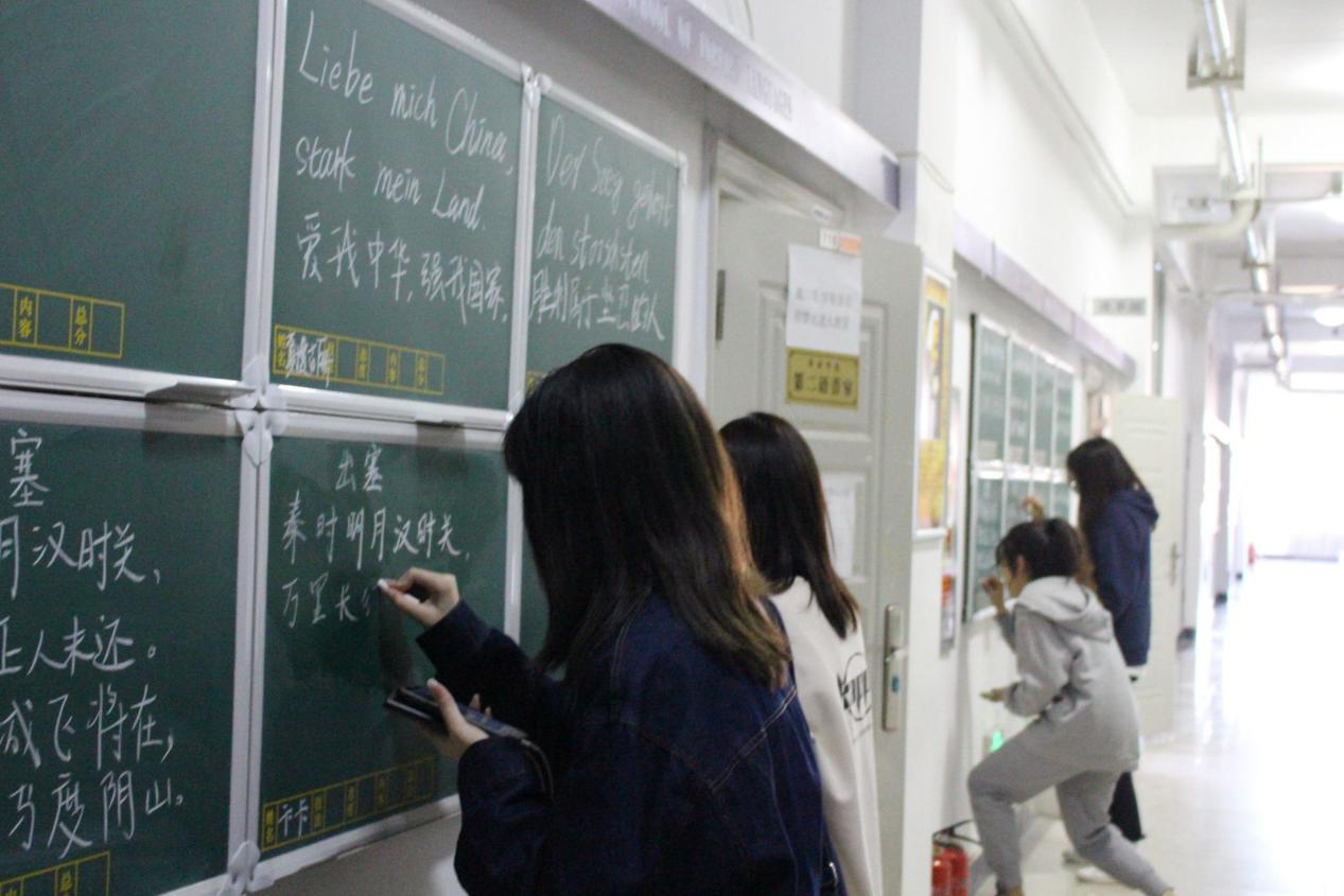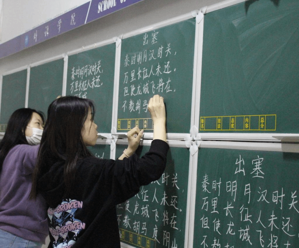 本次比赛于10月7日组织开展,面向外语学院大二至大四的全体在校生。初赛分为钢笔字书写和粉笔字书写两个部分,书写内容分别为《七律·长征》和《出塞二首·其一》,参赛同学在规定场地集中进行书写、展示。