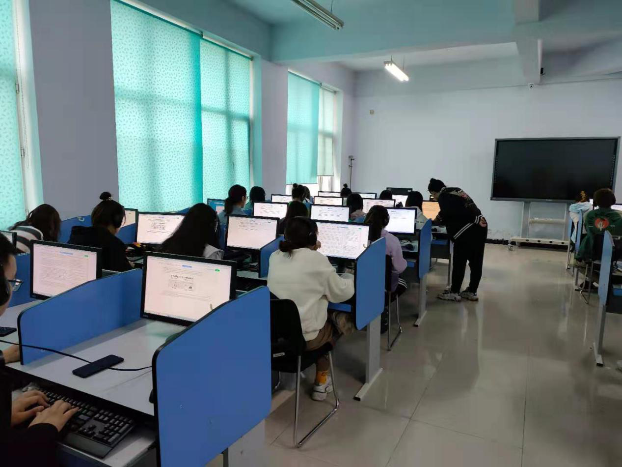 在当今信息化时代的背景下,建设智慧校园是时代发展的必然要求。为促进我校智慧校园建设,提升大学英语教学质量及效率,在外语学院赵文博副院长的领导下,外语学院教学副院长宋善波带领大学外语教研室部分骨干教师进行了无纸化考试的前测工作。经过前期的充分论证和长期准备工作,2021.04.23日上午八点无纸化考试的前测工作在第二实验楼701外语学院机房如期顺利进行,本次考试采用了Itest测试系统,该次测试选取了外语学院英语专业2019级40名学生参与此次测试,用于测试系统的稳定性及操作程序。本次前测进行顺利,从学生登录系统,随机组卷,试题传输,学生试题作答到最后的试卷提交及试卷批阅一气呵成。