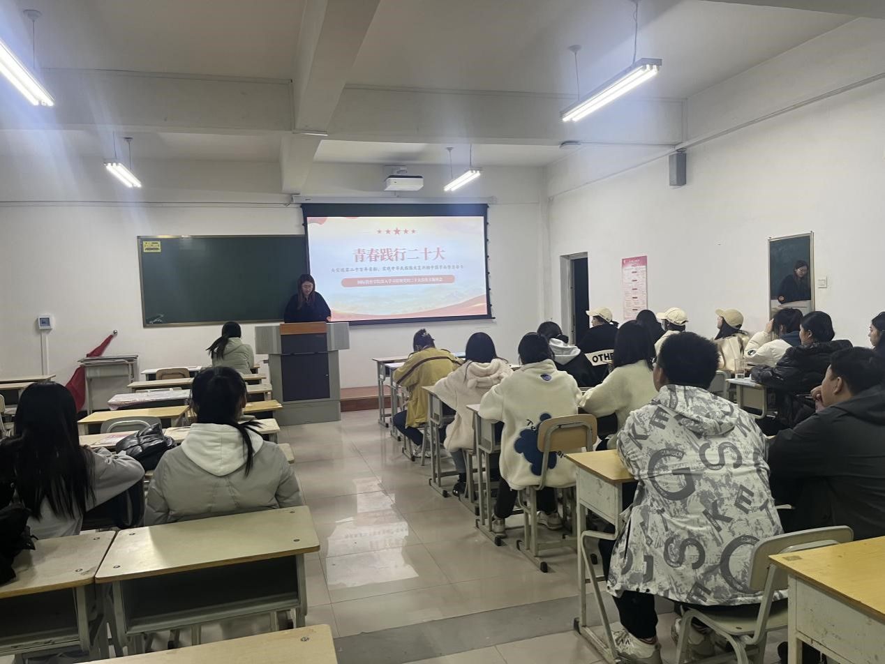 随后,各班班长带领同学们回顾二十大的主题及其重要意义,并引导大家以二十大精神为动力展望个人美好未来、擘画祖国宏伟蓝图。主题班会旨在将青年大学生的思想和行动统一到党的二十大精神上来,把智慧和力量凝聚到实现党的二十大确定的各项目标任务上来,更好地团结、引领广大青年学生们紧紧追随党,奋进新征程、夺取新胜利,在社会主义社会高质量发展进程中贡献青春力量。