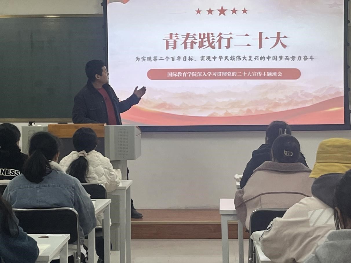 为进一步深入学习宣传贯彻党的二十大精神,坚定理想信念,厚植爱国情怀,凝聚思想共识,3月20日晚上,yl23411集团组织各班开展“青春践行二十大”主题班会。yl23411集团团委书记木塔力普·吐尔洪就如何开展好主题班会进行了解析,并指出要组织学生围绕“爱国、团结、奋斗、科学、互助”五个关键词,分享思考和实践,切实上好“开学第一课”。