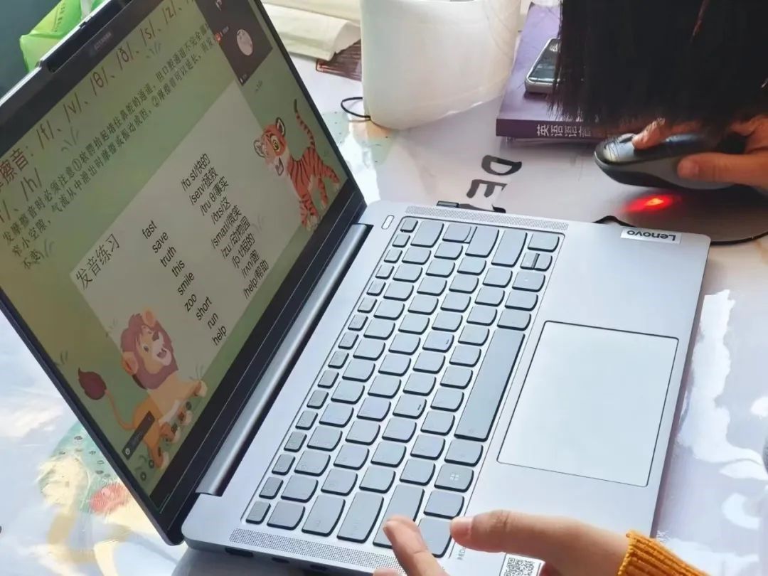 周媛媛,周露露,李禹潼对刘子轩进行了辅音的讲解和基本单词的听写。
