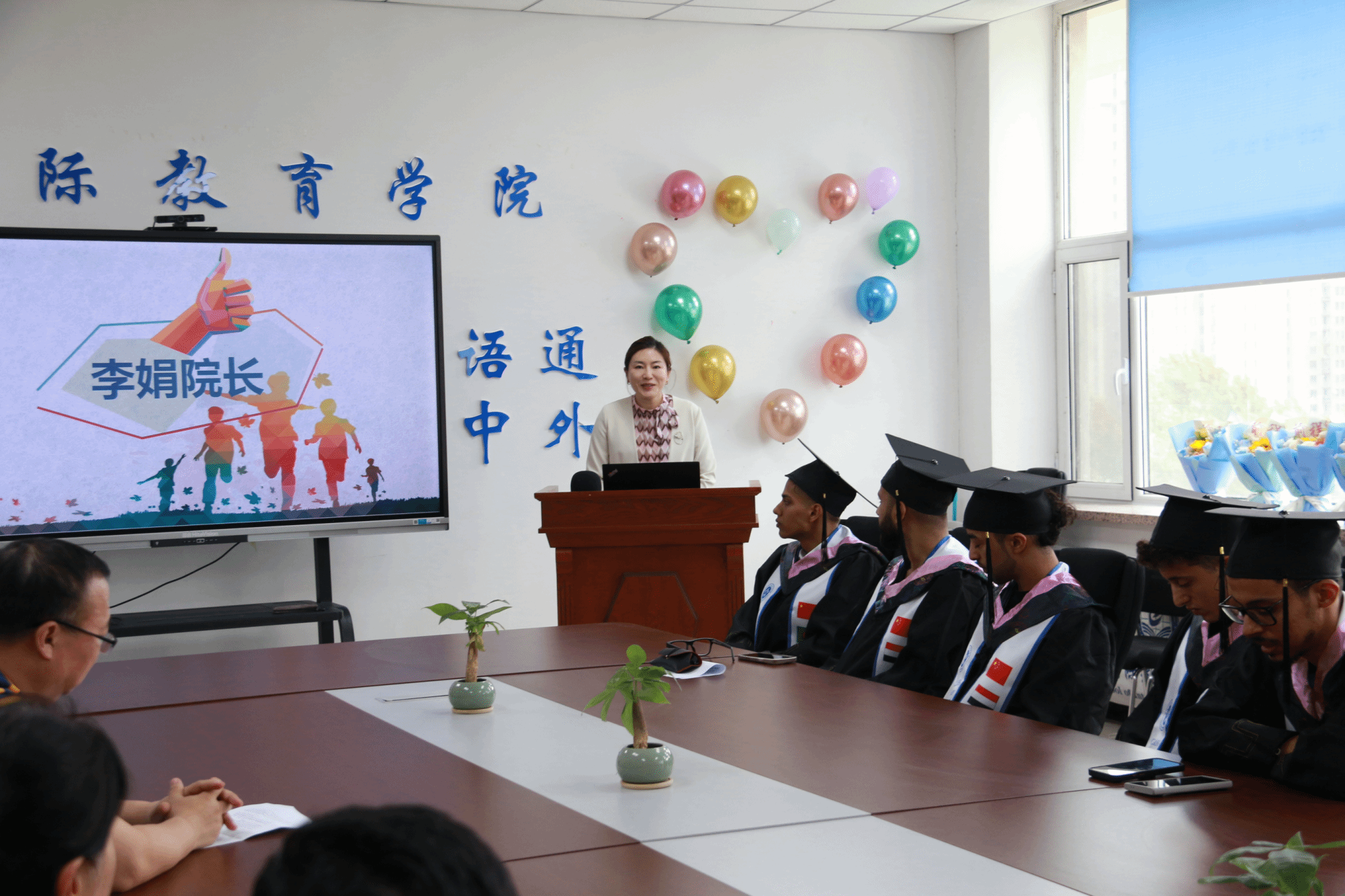 出席毕业仪式的领导有yl23411集团李新民书记、李娟院长、刘思宁副院长、郑岩副书记,以及教师代表武晓璐、段宇飞、木塔力普、宁颖老师。李娟院长、李新民书记分别在仪式上致辞,回顾了留学生四年来的异国学习经历,肯定了留学生个人拼搏精神和坚韧不拔的学习劲头,并为留学生送出对未来期望与祝福。
