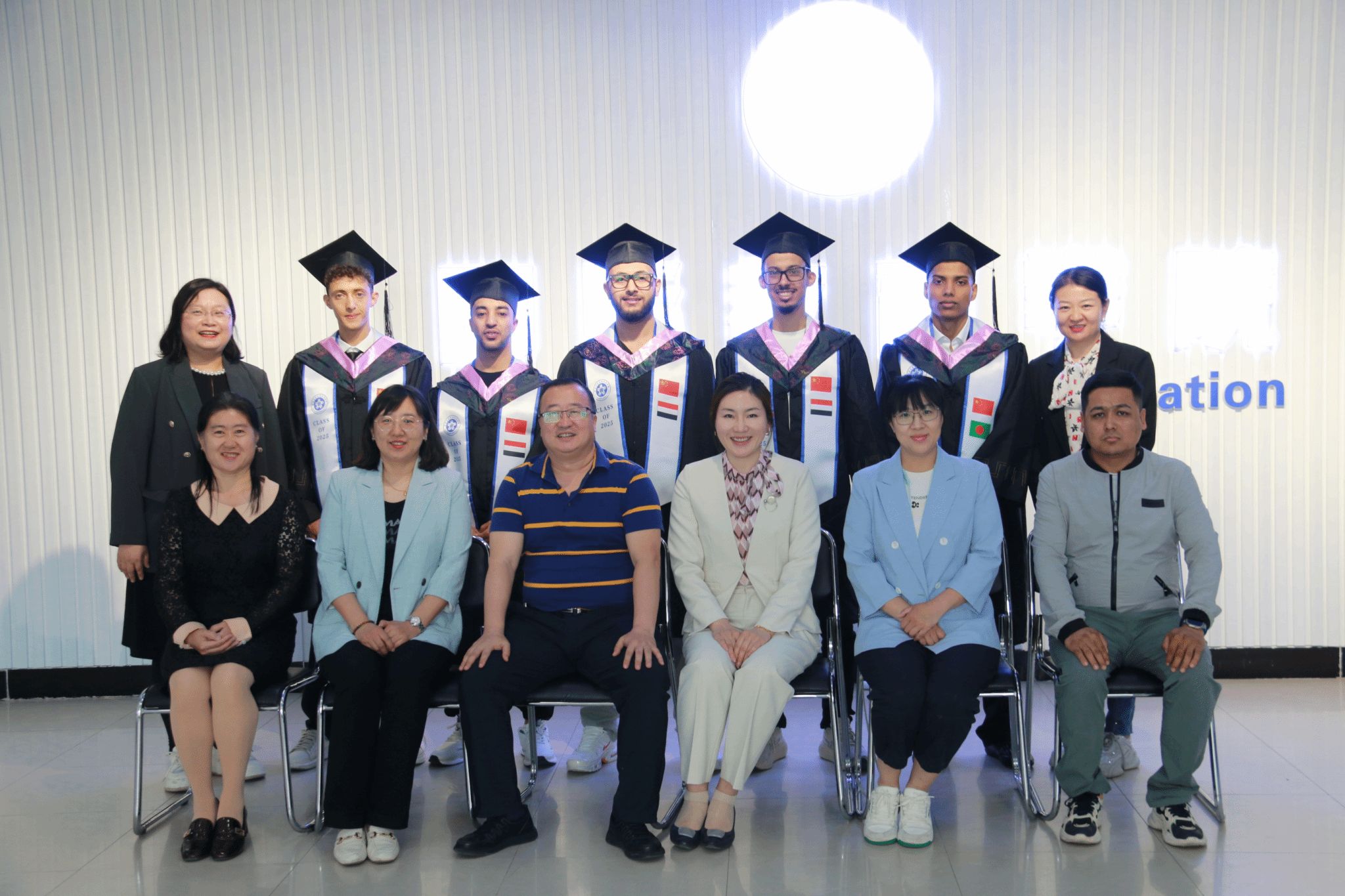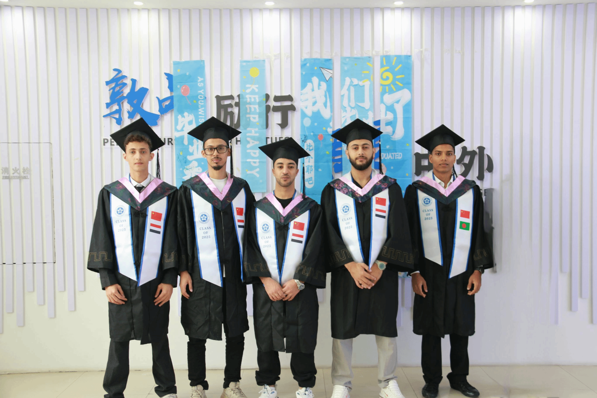 2025年6月3日下午,yl23411集团为2021届留学生王子(也门共和国)、阿杜(也门共和国)、王帝(也门共和国)、尼比尔(孟加拉人民共和国)、李白(也门共和国)5名毕业生在凯旋校区第二实验楼708会议室举办了隆重的毕业仪式。学院经过精心布置,周密安排,这场毕业典礼在庄重又热烈的氛围中进行。
